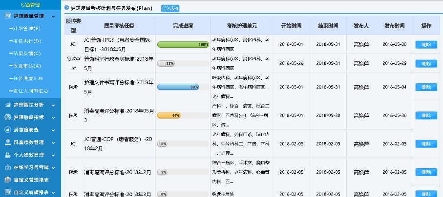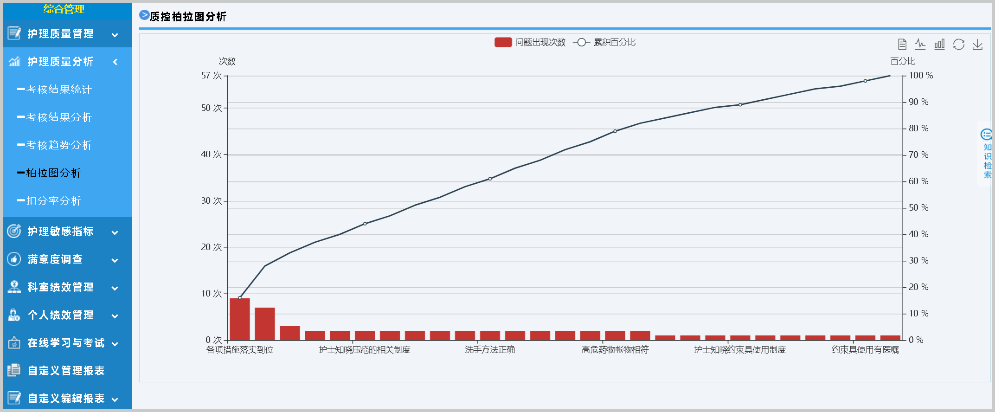 針對護理質(zhì)量管理重點,支持自定義質(zhì)控表單,使用評分、扣分等多種考核方式,電子化護理質(zhì)量考核、持續(xù)跟蹤記錄,并可以用于統(tǒng)計分析。