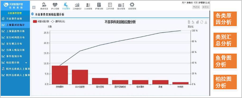 支持14項目+時間+科室+個人+患者 超精細化統(tǒng)計分析,自動抽取 跌倒評估、墜床評估等護理文書數(shù)據(jù),進行二次機構(gòu)化統(tǒng)計分析,極大降低工作量。