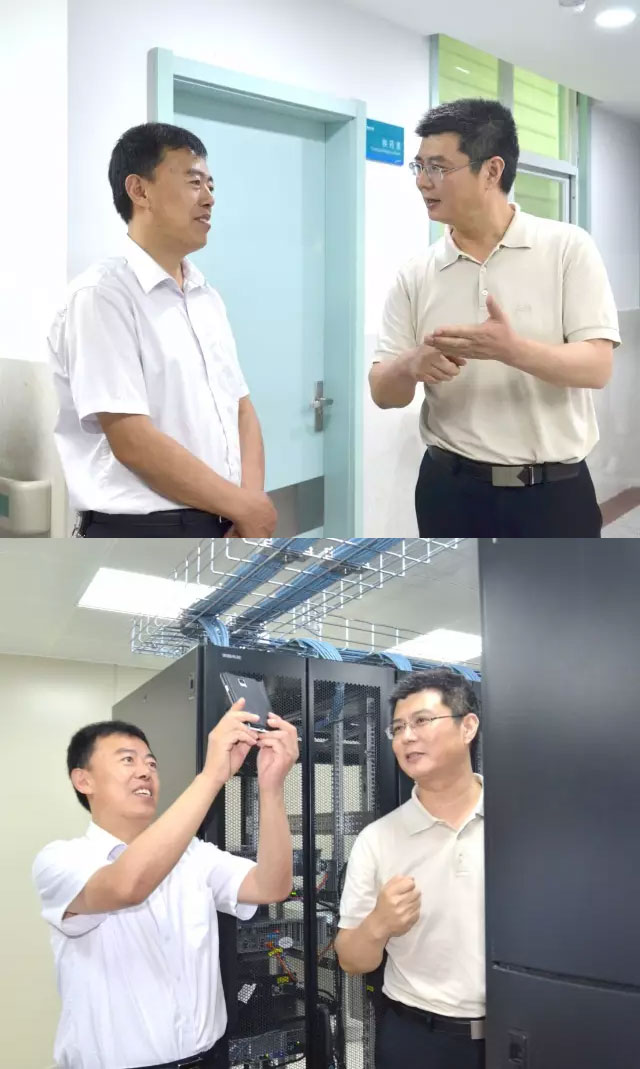 泰安電信公司總經(jīng)理侯啟敬在參觀我院機房時,對線向的布局贊不絕口,并用手機拍照